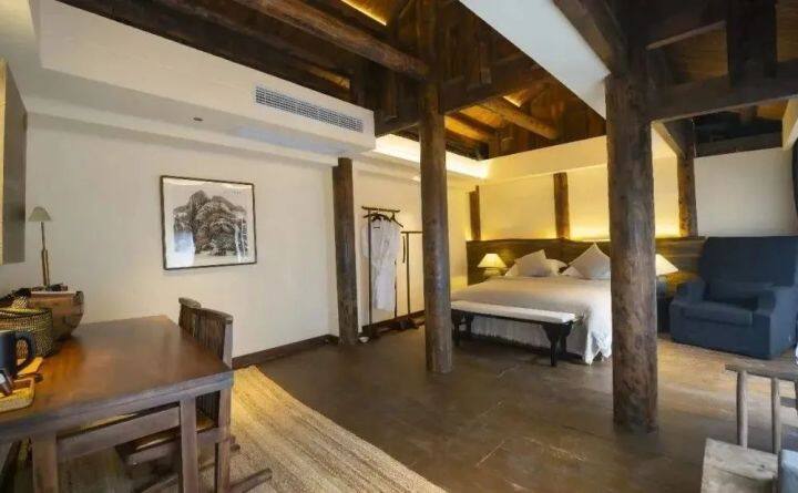 南城别院建筑面积约2600平方米,拥有客房37间/套,房间分为东、南、西、北四大主庭,还配备茶室、书吧等。各独院、合院、叠拼各房型采用多形态的侘寂风设计,彰显流行时尚的尊贵与自然回归品味。