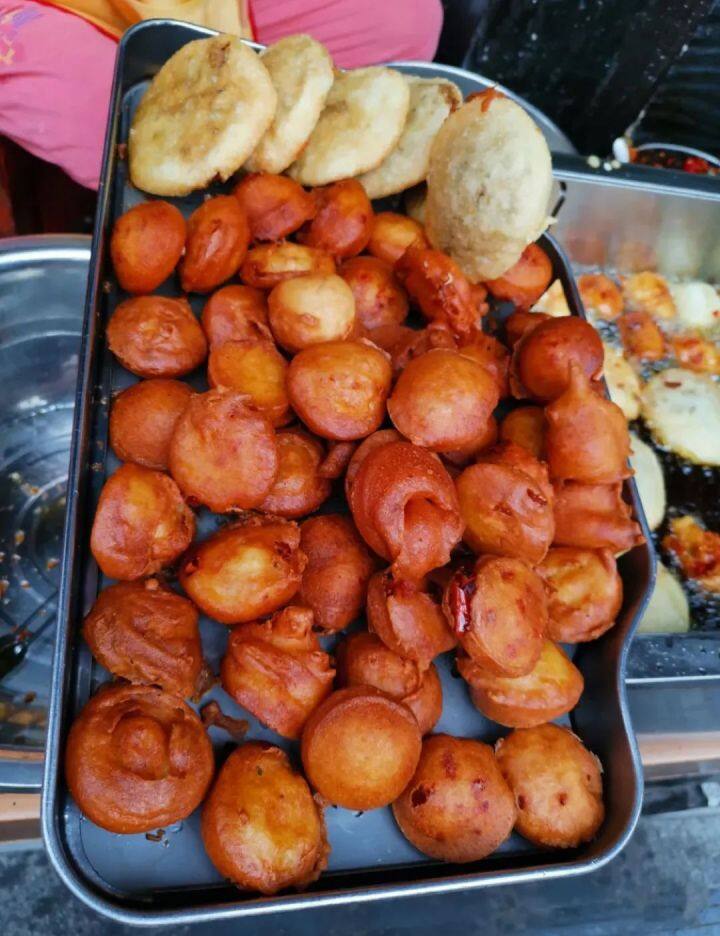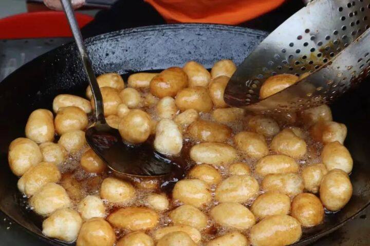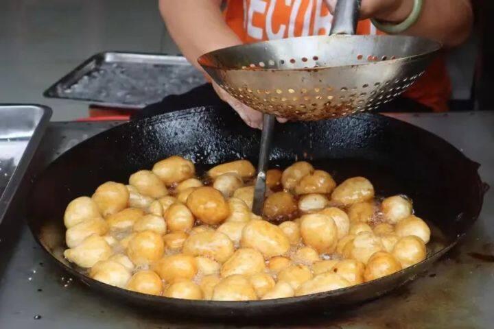 你走到大街小巷,随处可见卖糖麻圆的小摊。糖麻圆,在炸之前是一颗小小的糯米团子,外面裹着一层红糖,糯米团子油炸之后外表形成的薄脆外壳,在红糖的加持下有着格外迷人的色泽和焦糖风味,一口咬下去,香脆可口。