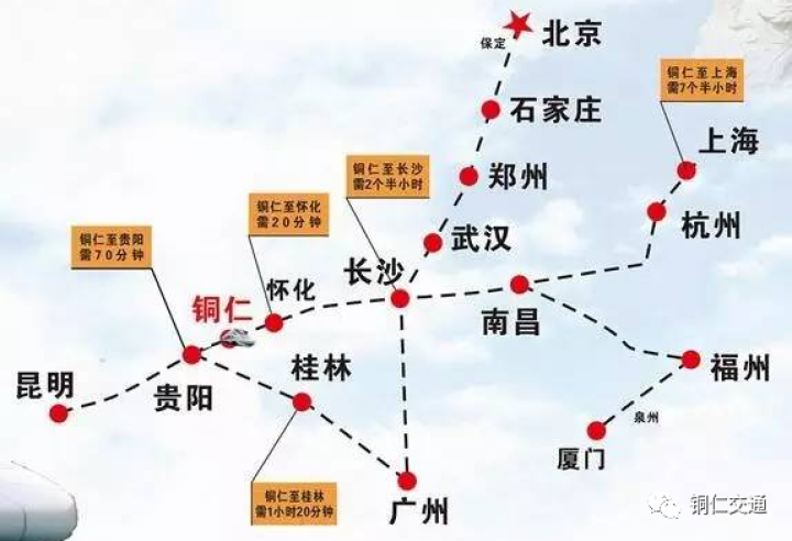 【高铁】无论贵阳、安顺、凯里等地的省内朋友,或是上海、杭州、南昌、长沙等地的省外游客,都可以搭乘沪昆高铁来铜仁;贵阳到铜仁70分钟、湖南怀化20分钟、长沙2小时、上海7小时,嗖~嗖~嗖就到了哦。