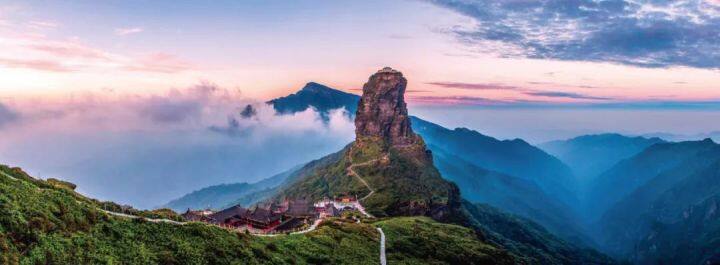 一道名为“金刀峡”的裂缝将金顶一分为二,中间由天梯相连,两边各有一座寺庙,只有登上8000台阶“佛国天梯”后,才能真正欣赏到云上美景。