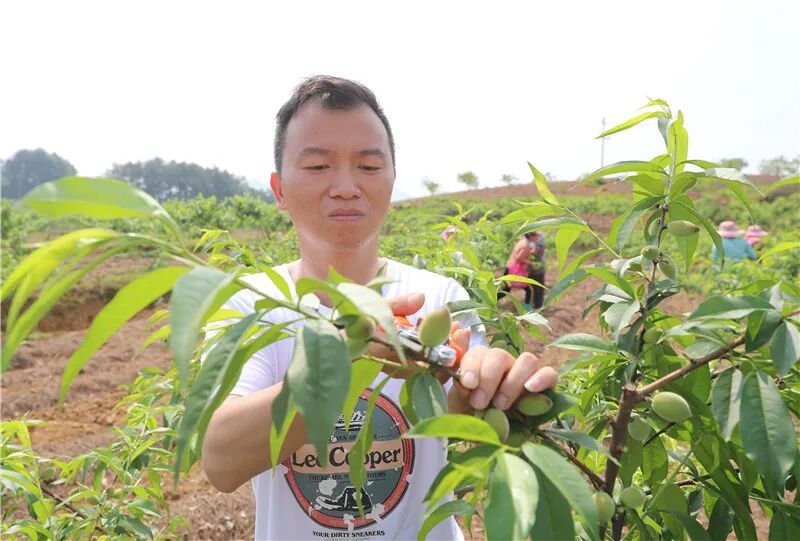 沙子坳村是玉屏侗族自治县二类贫困村,由于产业基础薄弱,发展散、管理乱、见效慢,贫困群众脱贫难度大。2019年9月,李强被组织安排到沙子坳村担任驻村工作队队长。李强经过调研,发现村里的种植大户均经过水果专业技术培训且有一定管护经验,于是,他将所有种植大户进行产业整合,组成一家股份制水果基地管护公司,开展“黄桃+魔芋+球盖菇”循环套种,并实现了向周边村果树管护覆盖。为减少农业废弃物污染, 2019年9月,李强与驻村工作队、村支两委班子和部分种养殖大户经过考察论证,培育了一家有机肥生产企业,将牲畜粪便、秸秆、废菌棒、黄桃枝条、葡萄枝条等进行加工发酵,形成有机肥用于黄桃、葡萄等种植,使农业废弃物等得到了循环利用。产业捆绑式组团发展,同时也给村集体经济带来了收益,贫困户不仅得到流转土地的收益,在公司务工实现了农民向产业工人的转变,两家公司吸纳了50余户农户长期务工,人均月工资达3000余元,稳定增收不返贫。“我们调整生产要素分配,目的就是使现有产业向现代农业转变,让已脱贫户成为产业工人,持续增收不返贫!”李强说。