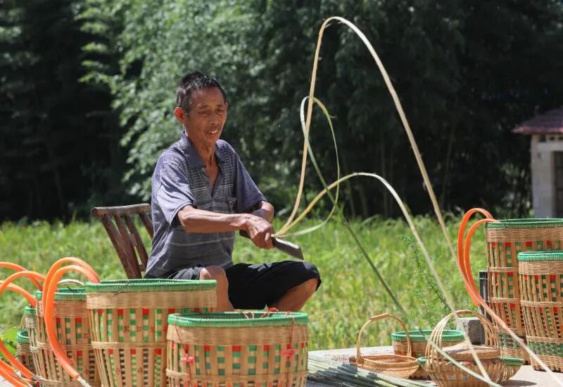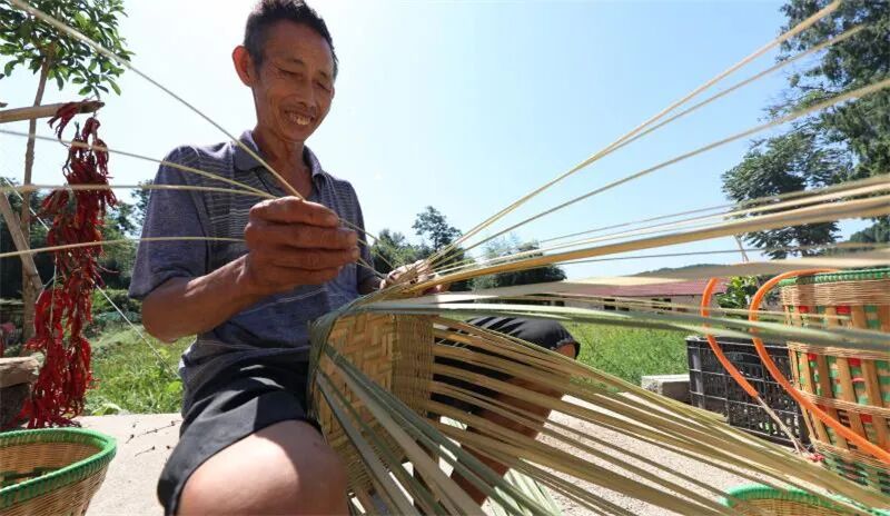 受父亲的影响,2010年,身患脊柱骨质增生无法下地干农活的杨德田,开始学习传统竹编技术,经过努力,他依托出售竹编制品顺利实现了脱贫。