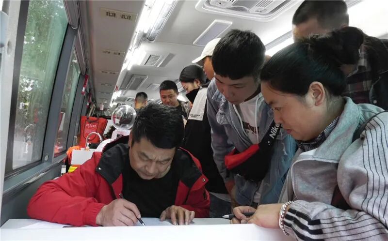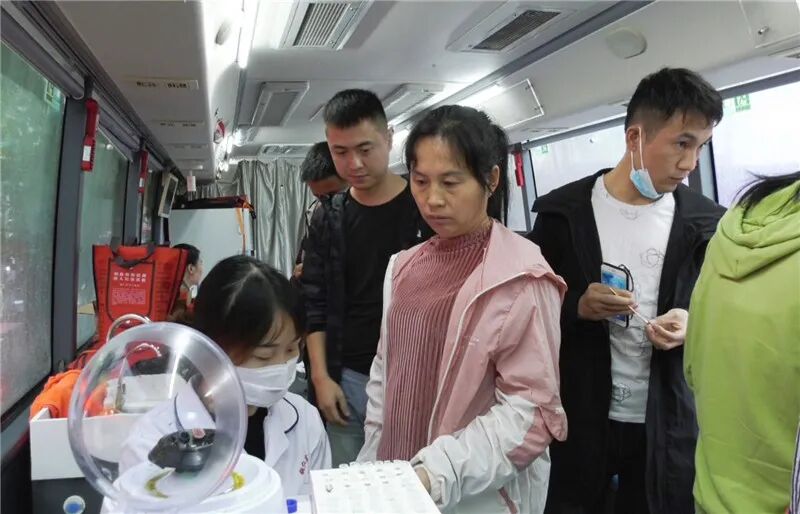 上午9点,前来献血的志愿者们早已站在献血车前排队,在医务人员的引导下,填表、健康征询、体检、血液检测、采血等各个步骤有条不紊进行。