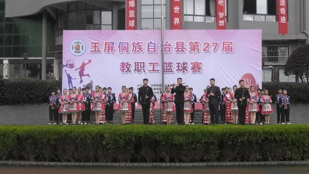 10月20日,全县第27届教职工篮球运动会在玉屏中等职业学校拉开序幕。来自全县教育系统的33支代表队共428名运动员、裁判员参加。