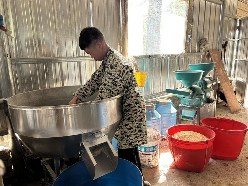 舒博在调配饲料