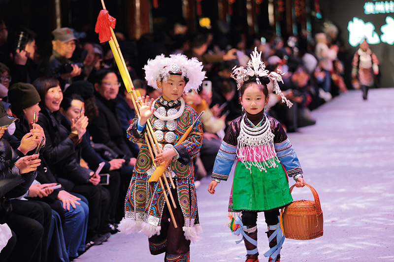 贵州凯里民族风情园风雨桥走廊“村 T”走秀活动现场(2025年3月29日摄)。刘续摄/本刊