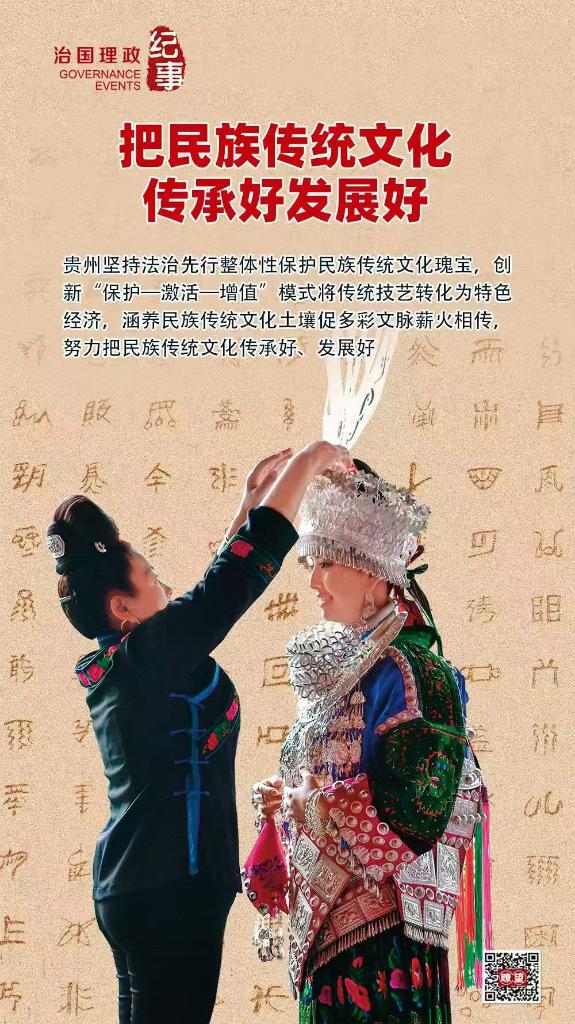 贵州不断完善民族传统文化传承发展政策法规体系:2022年出台的地方性法规《贵州省优秀民族文化传承发展促进条例》紧贴贵州实际,着重在依法推进民族文化传承发展、发挥利用好民族传统文化资源优势、助推全省经济社会高质量发展等方面作出规定。
