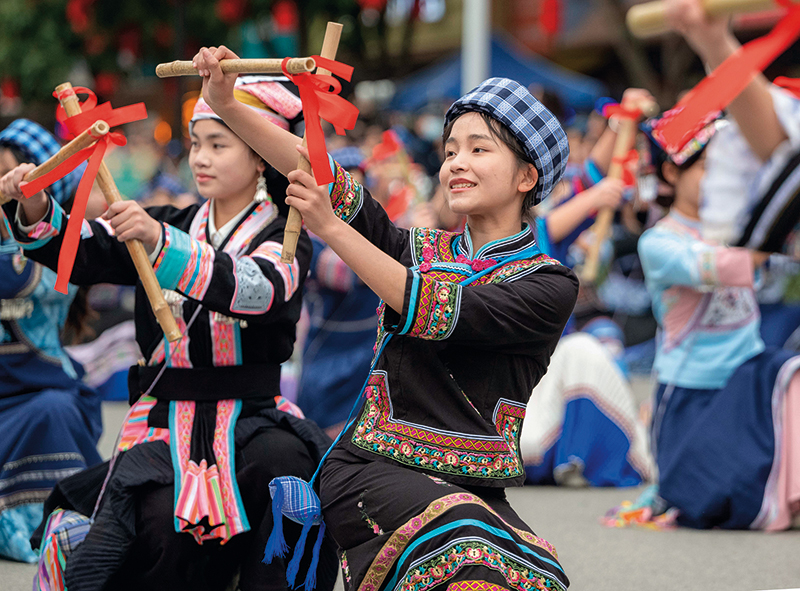 民族巡游队伍在贵州省望谟县庆祝传统节日“三月三”(2025年3月31日摄)。刘续摄/本刊