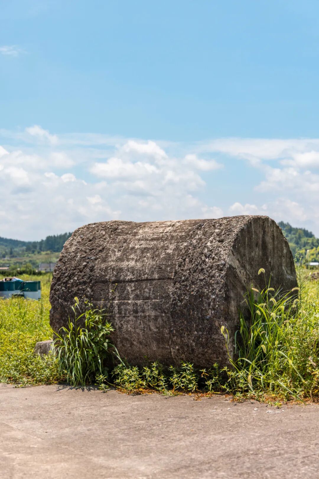 如今的黄平旧州机场与当年遗留重达约十吨的石磙。