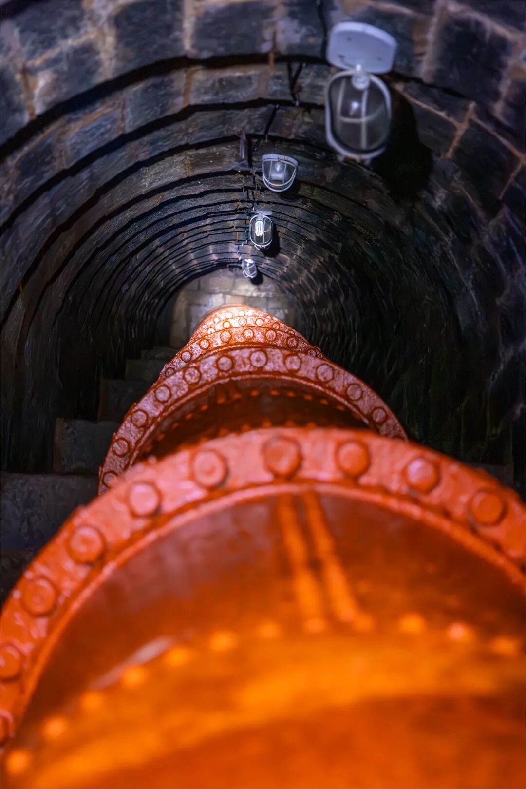 天门河水电厂深处管道运送着奔腾不息的河水。