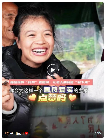 镜头前,杨娇艳依旧在用沙哑的嗓音热情地吆喝。她的“村抖”直播间,让一份份山货飞出了大山,也真正让老人们压弯的背篓,轻了下来。