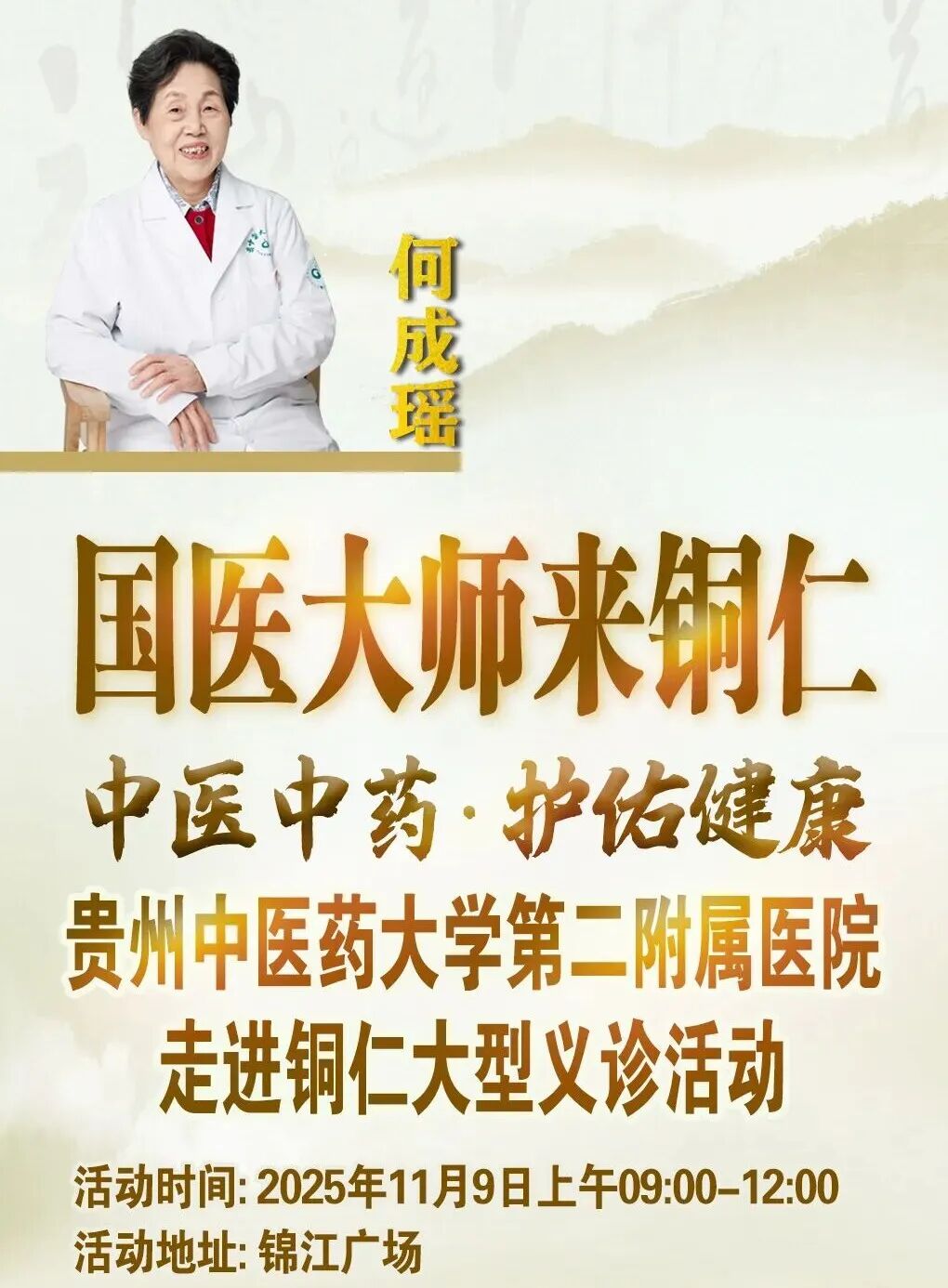 为切实提升群众健康服务获得感与幸福感,弘扬中医药文化,普及中医药知识,由贵州省人力资源和社会保障厅、贵州中医药大学第二附属医院、铜仁市人力资源与社会保障局、铜仁市卫生健康局主办,铜仁市中医医院及碧江区卫生健康局承办的“中医中药 护佑健康——走进铜仁”活动,将于11月9日(本周日上午9:00--12:00)走进铜仁碧江区开展大型健康义诊。届时贵州中医药大学第二附属医院50名,包括国医大师、各专科名医、专家组成的义诊团队与铜仁市中医医院医疗专家共同为市民提供优质专业的医疗服务。欢迎广大市民朋友们积极参与,体验中医疗效,感受中医魅力。