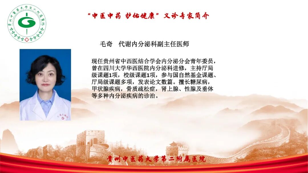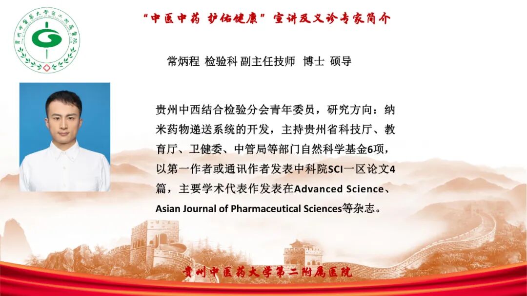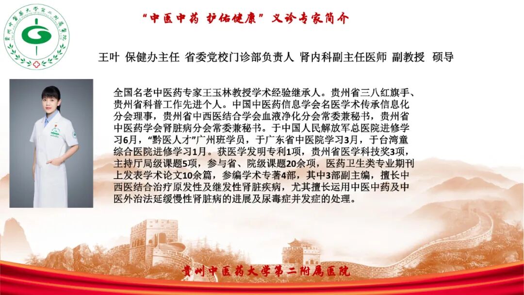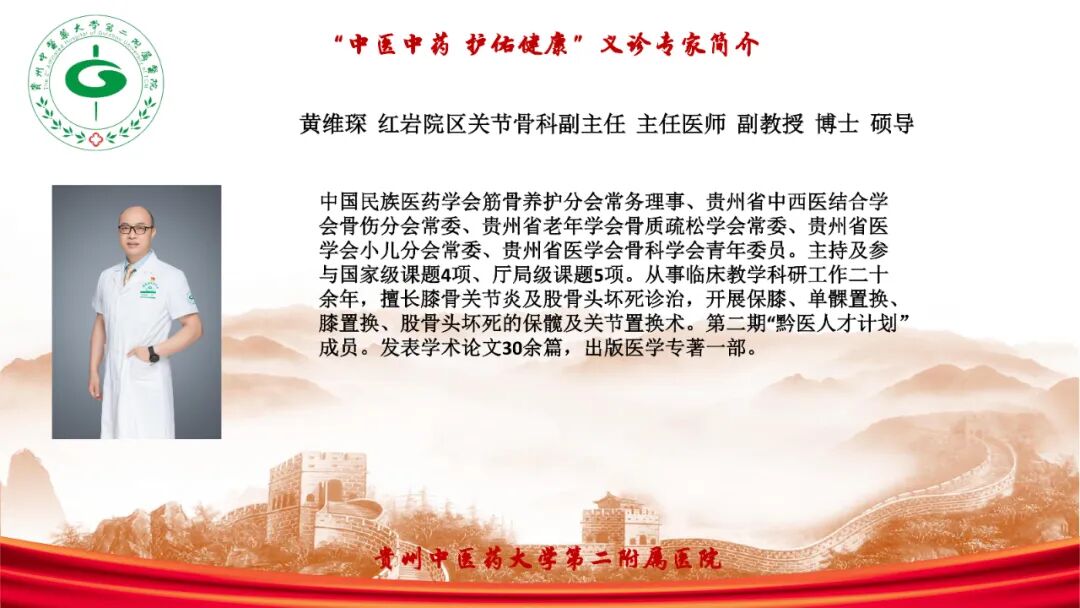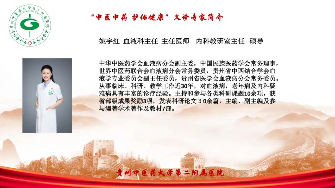 义诊邀请到国医大师何成瑶,贵州省名中医、全国名老中医药专家学术经验指导继承工作指导老师王玉林,以及来自泌尿外科、消化内科、脊柱骨科、血液内科、风湿免疫科、创伤矫形骨科、普外科(胃肠、甲乳)、老年医学科、关节骨科与运动医学科、产科、神经内科、心血管内科、肝胆胰脾外科、肾内科、神经外科、重症医学科、麻醉(疼痛)科、针灸康复科、推拿科、内分泌科、眼科、肛肠科、皮肤科、呼吸内科、口腔科、儿童康复中心、体检治未病中心、超声医学科、检验科、放射科、急诊科、省委党校门诊部以及保健办等科室专家为您现场把脉问诊,定制“专属调理方案”。