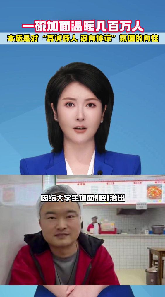 武汉襄阳,面馆老板王锐因给大学生“加面”加到溢出,意外走红,而网友用“不填地址的空单”表达对他的支持,这份双向奔赴的善意温暖无数人。