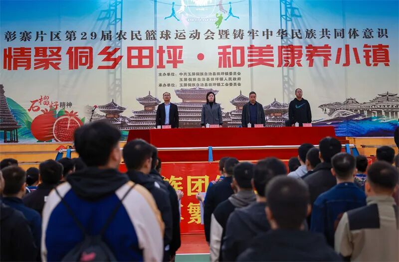 11月7日,玉屏侗族自治县田坪镇2025年彰寨片区第29届农民篮球运动会暨铸牢中华民族共同体意识“情聚侗乡田坪·和美康养小镇”美丽乡村篮球邀请赛活动在玉屏侗乡风情园篮球场火热开赛。县人民政府副县长郑美妮出席开幕式并讲话。