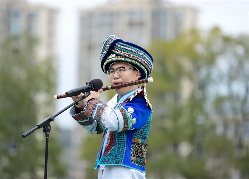 比赛开始前,赛场氛围热烈浓厚。本土艺人身着侗族传统服饰,携玉屏箫笛演绎《等你来侗乡》,清亮笛音搭配特色服饰,让赛场沉浸在浓郁的本土文化氛围中;男声独唱《梵净山之歌》高亢悠扬,唱出黔东大地的人文底蕴。