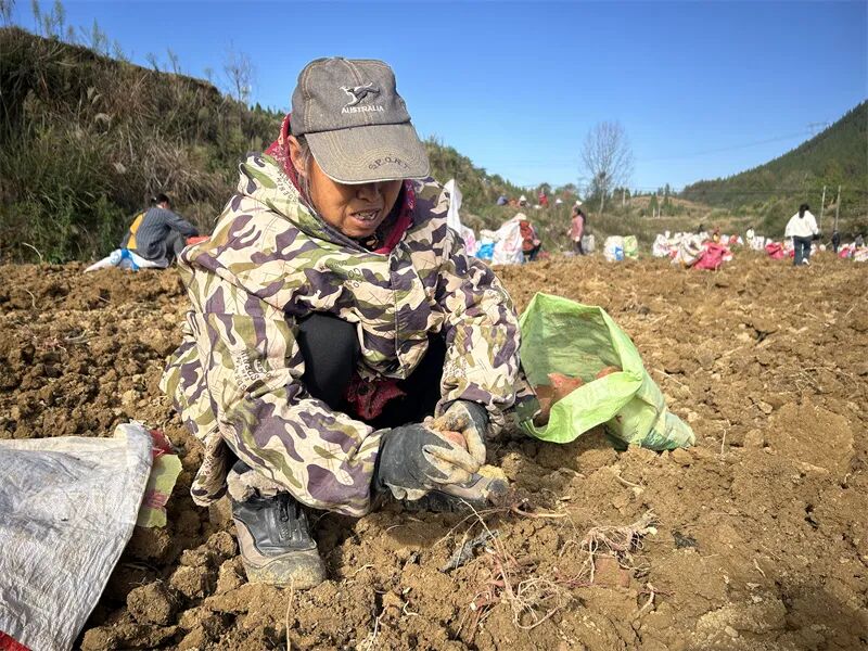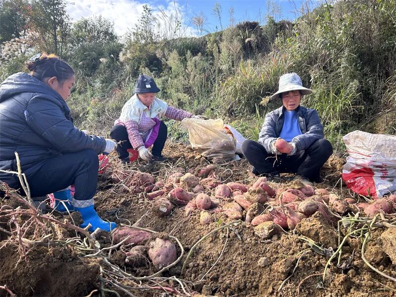 工人岳琼说:“自基地开始挖苕(红薯),我便在此务工,在家门口就能赚钱。”