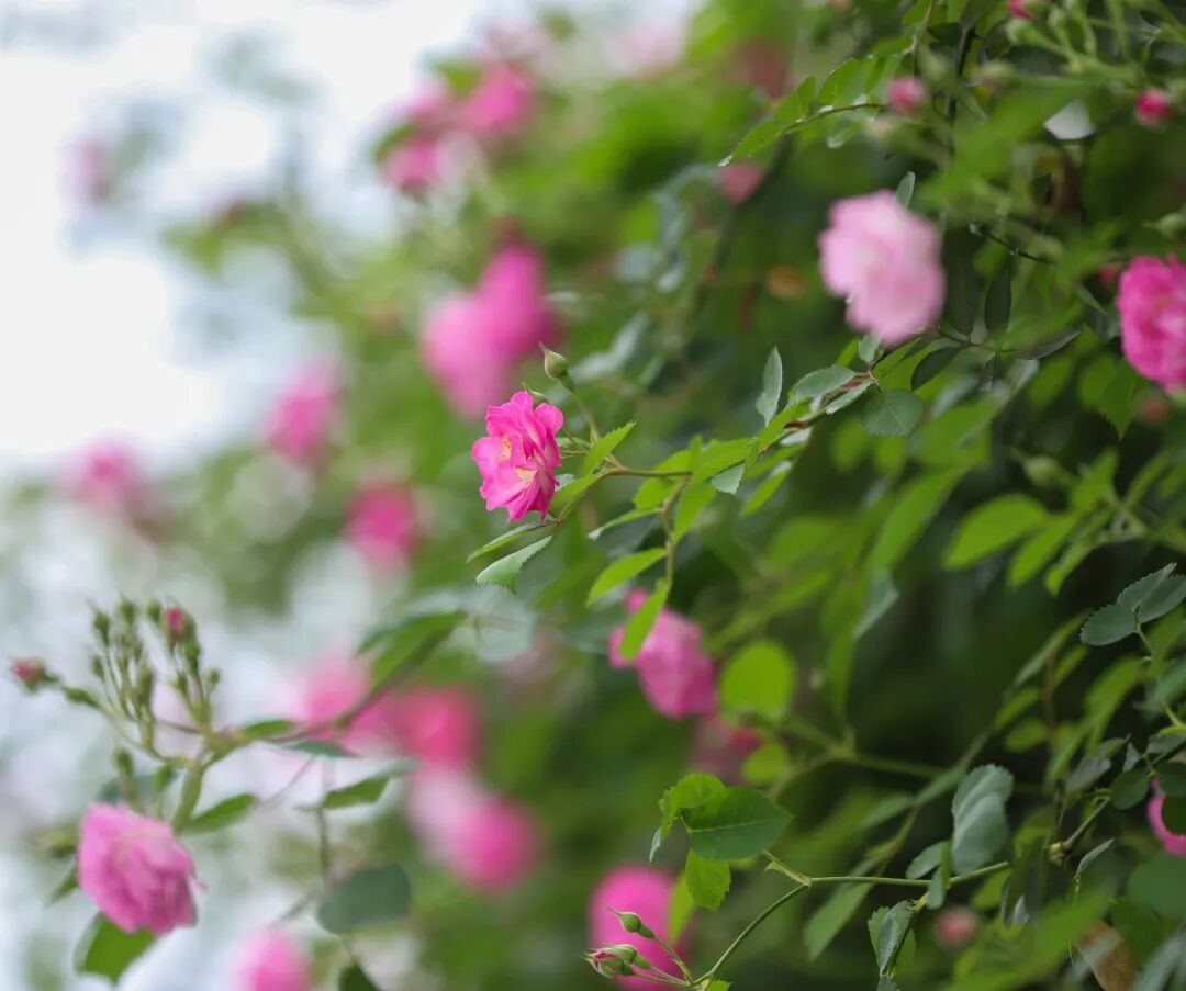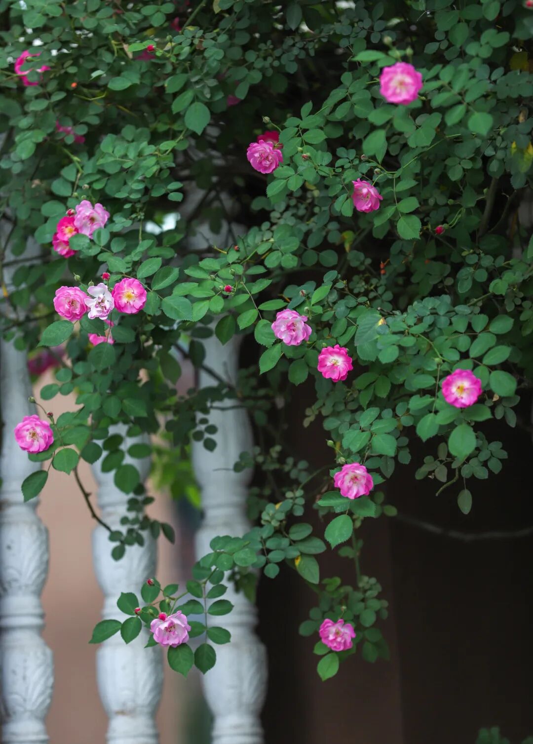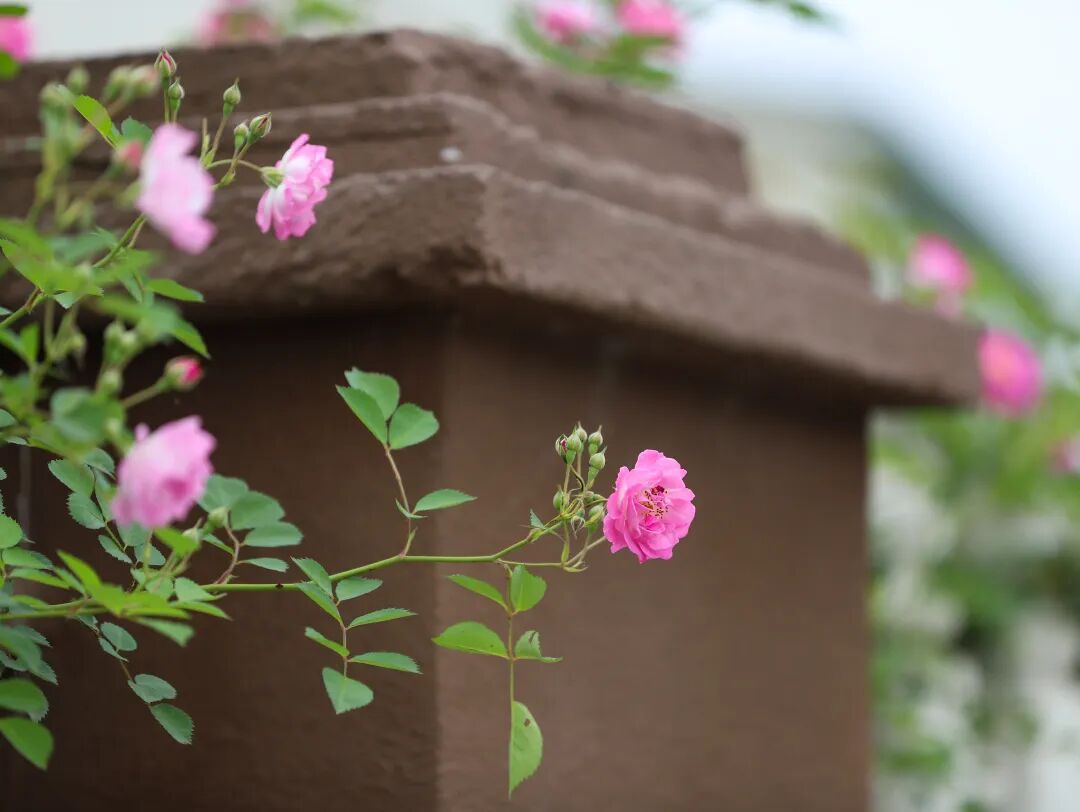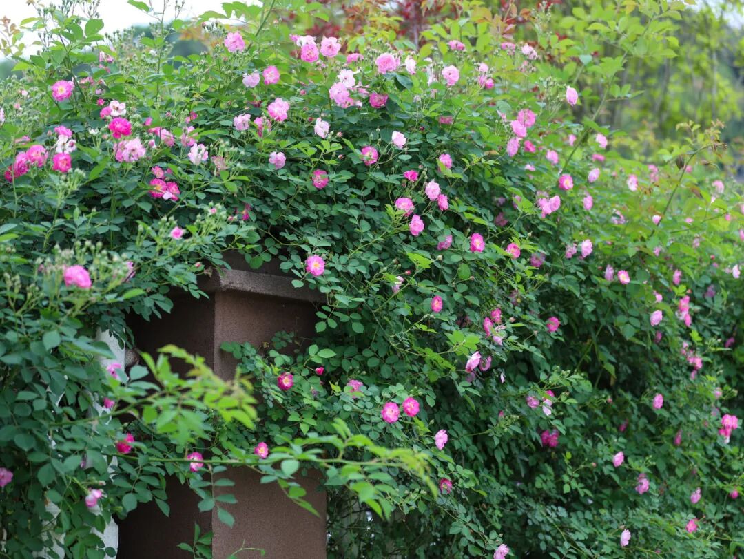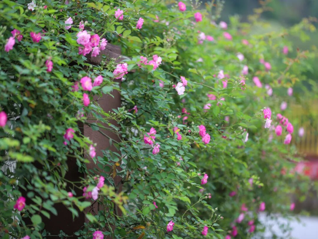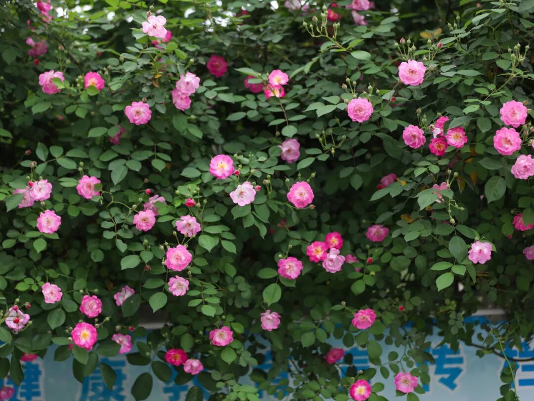漫步至第五幼儿园旁,一丛丛、一簇簇蔷薇肆意舒展,粉白、浅粉、胭脂红交织错落,顺着廊架、墙头攀援生长,层层花瓣倾泻而下,汇成壮观的 “蔷薇花瀑”,为春日画卷添上浓墨重彩的一笔。