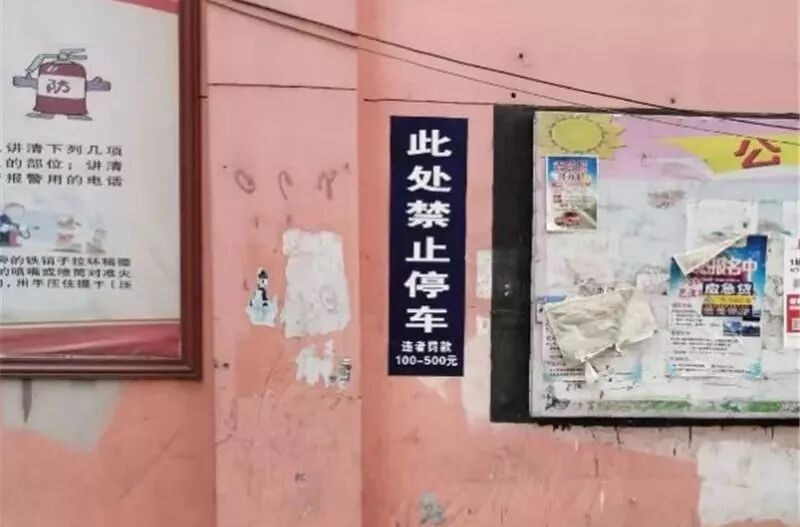 微友曝:墙上贴的禁止停车完全没有作用,视作无物。
