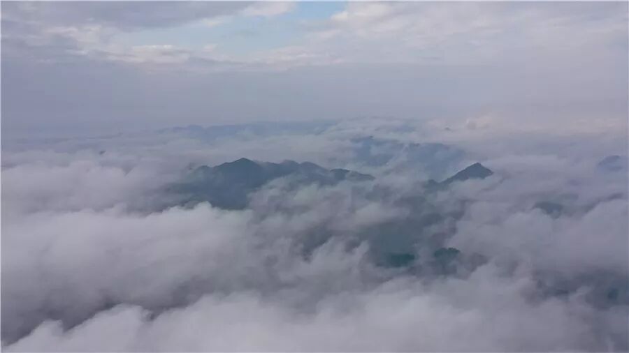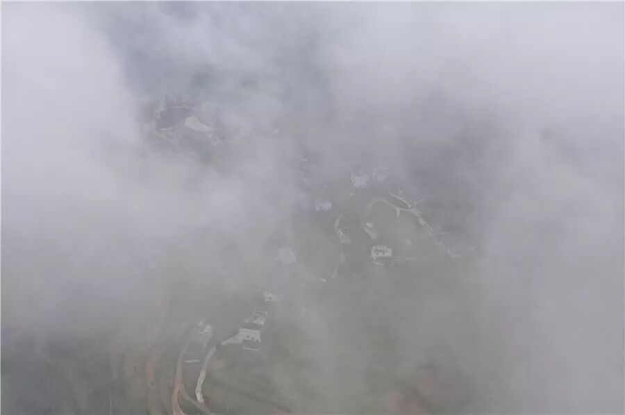 10月21日,玉屏侗族自治县皂角坪街道铁家溪村上空出现的平流雾景观(无人机拍摄)。