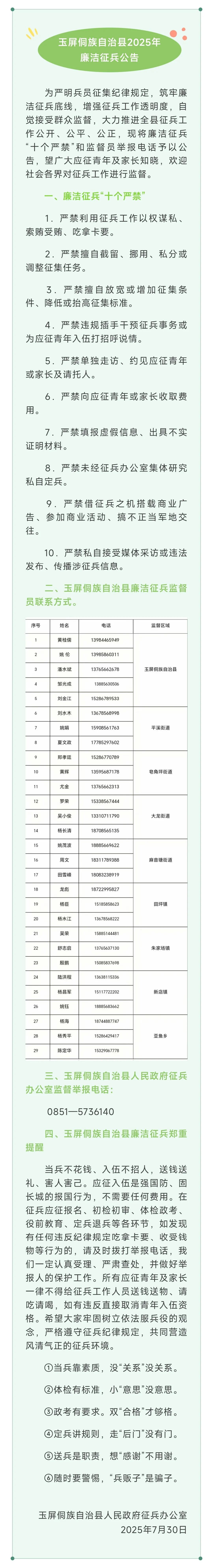 @玉屏人,廉洁征兵,请您监督!举报方式在这里→