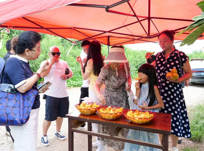 游客黄银银说:“第一次体验采摘黄桃,我感到很兴奋、很愉悦。”
