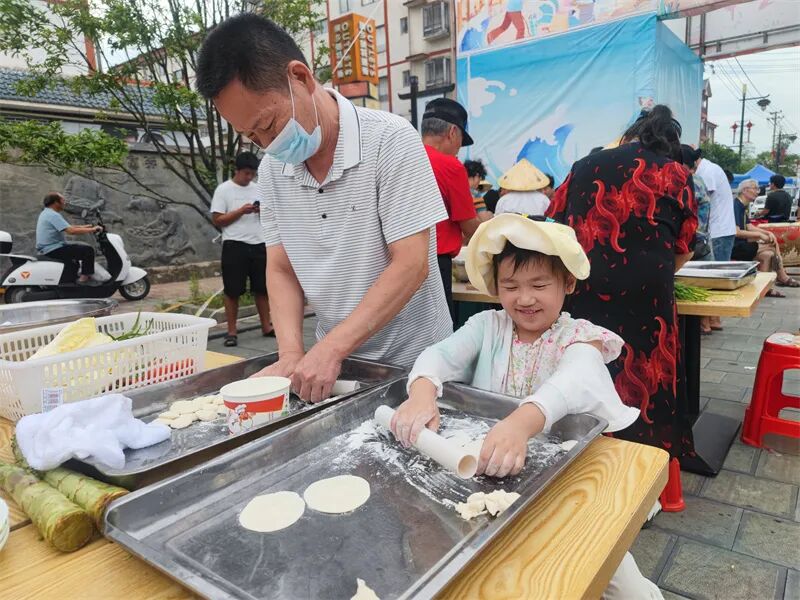 游客甜酱说:“我和外公外婆一起包饺子,我特别喜欢擀面,真的太开心了。”