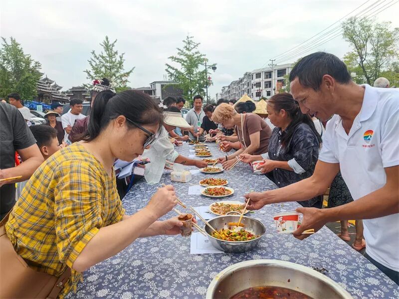 本次活动以“碱粑宴”为主题,特邀当地侗菜厨师与来自西安、武汉、湖南等地的客人组成16支队伍同台竞技。经过一上午的激烈比拼,最终评选出一、二、三等奖。一等奖由“侗乡油茶牛”摘夺桂冠,二、三等奖分别由“牛杂灰碱粑火锅”“酸汤肉丸”获得。