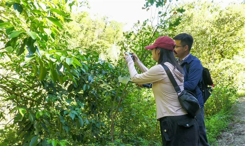 抵达目的地后,队伍在当地资深中药师的带领下沿山径行进,大家结合自身专业背景,就沿途发现的多种药用植物展开了热烈讨论与精准辨识,并使用枝剪、锄头、镰刀等工具采集样本。