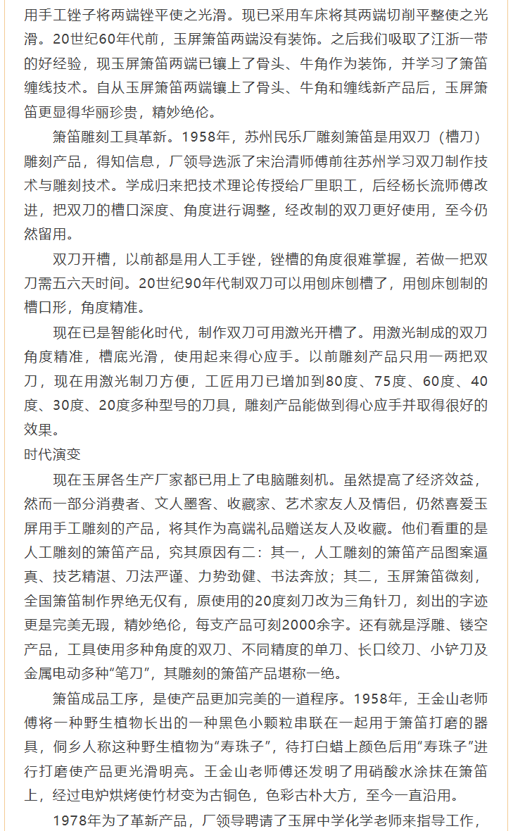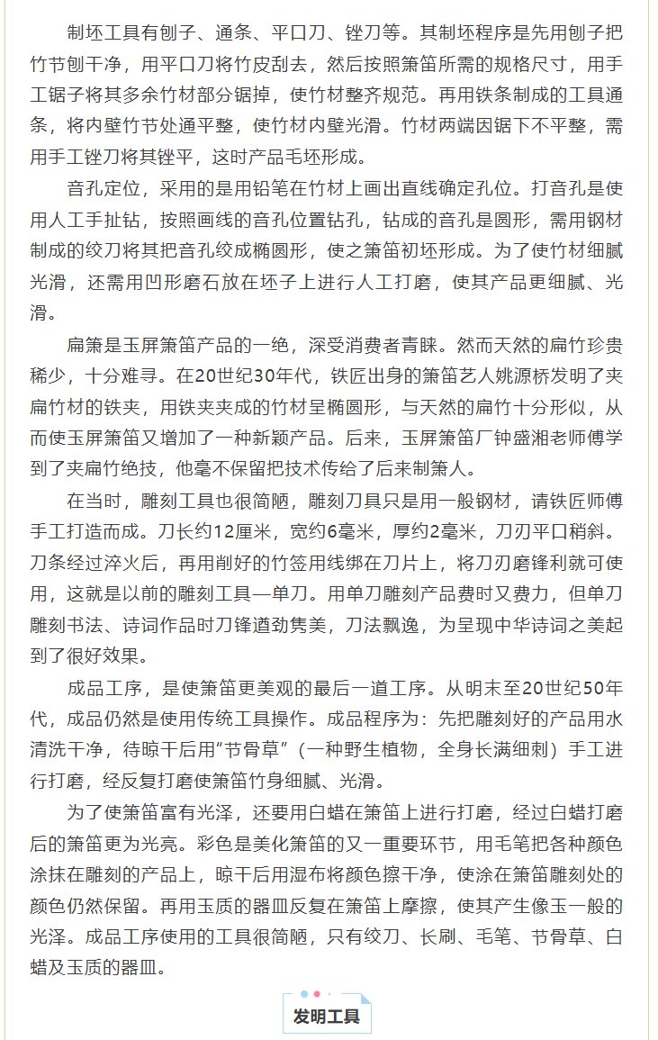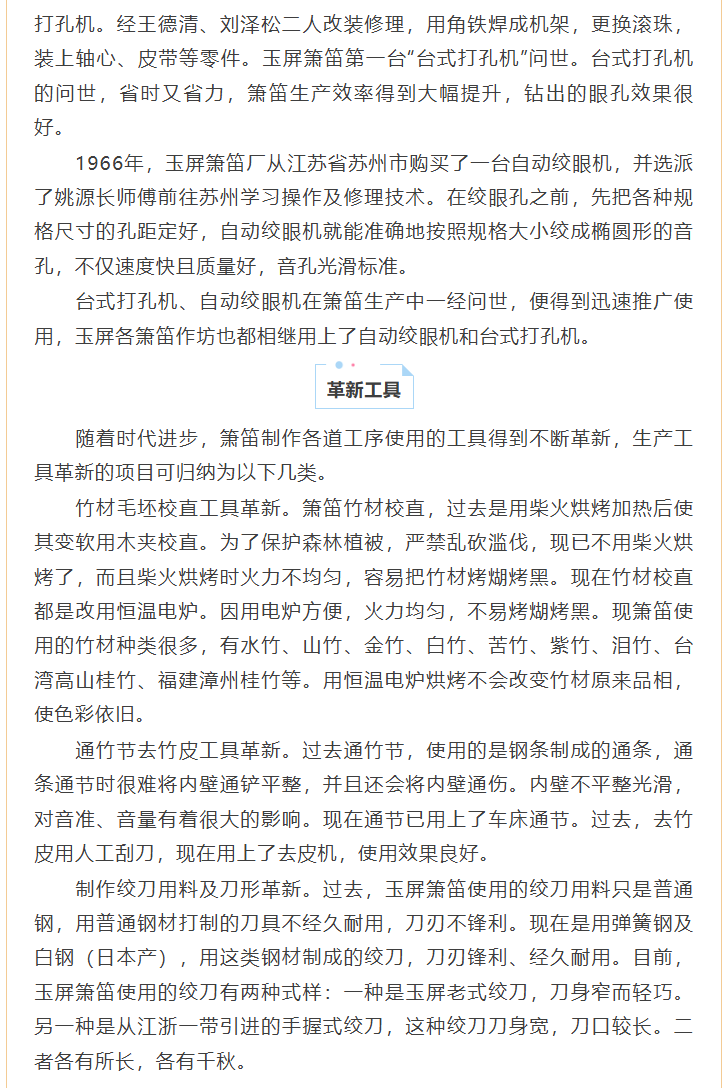 《玉屏箫笛文史集萃》线上读 ▏玉屏箫笛生产工具的革新