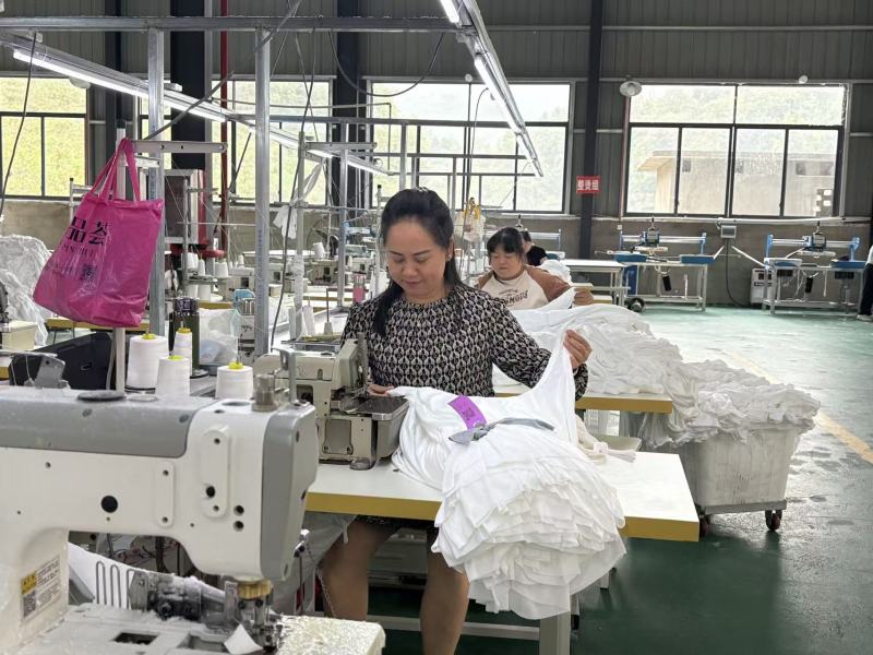 贵州吉天华服装制造有限公司(玉屏分公司)专注于服装生产业务,产品主要出口非洲,年产值预计可达500万元。自2025年6月落地康华社区以来,以“带动社区就业,助力群众增收”为目标,迅速成为社区居民家门口的“就业驿站”。目前,该公司已带动102名周边群众就业,其中2名残疾人实现稳定就业。