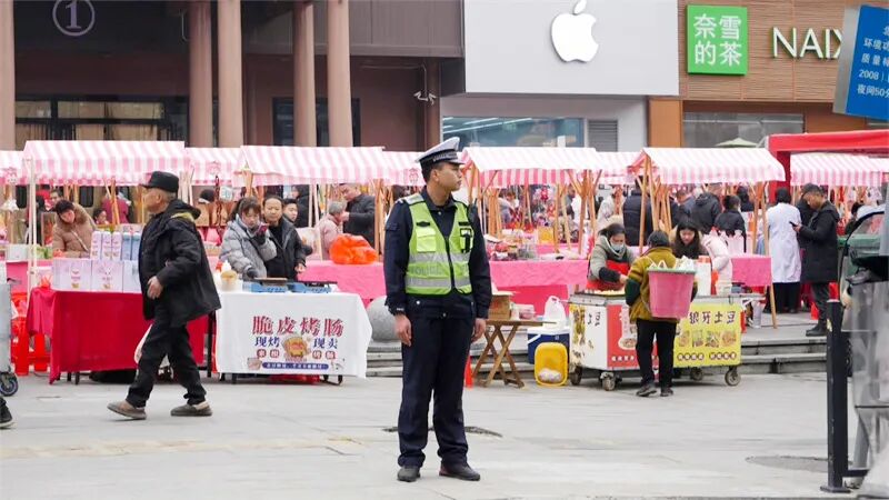 一大早,一抹亮眼的“藏蓝红”便已遍布城区重点区域,执勤民警辅警们分赴城区年货市场、主要路口、人流密集路段,开启全天的守护模式。